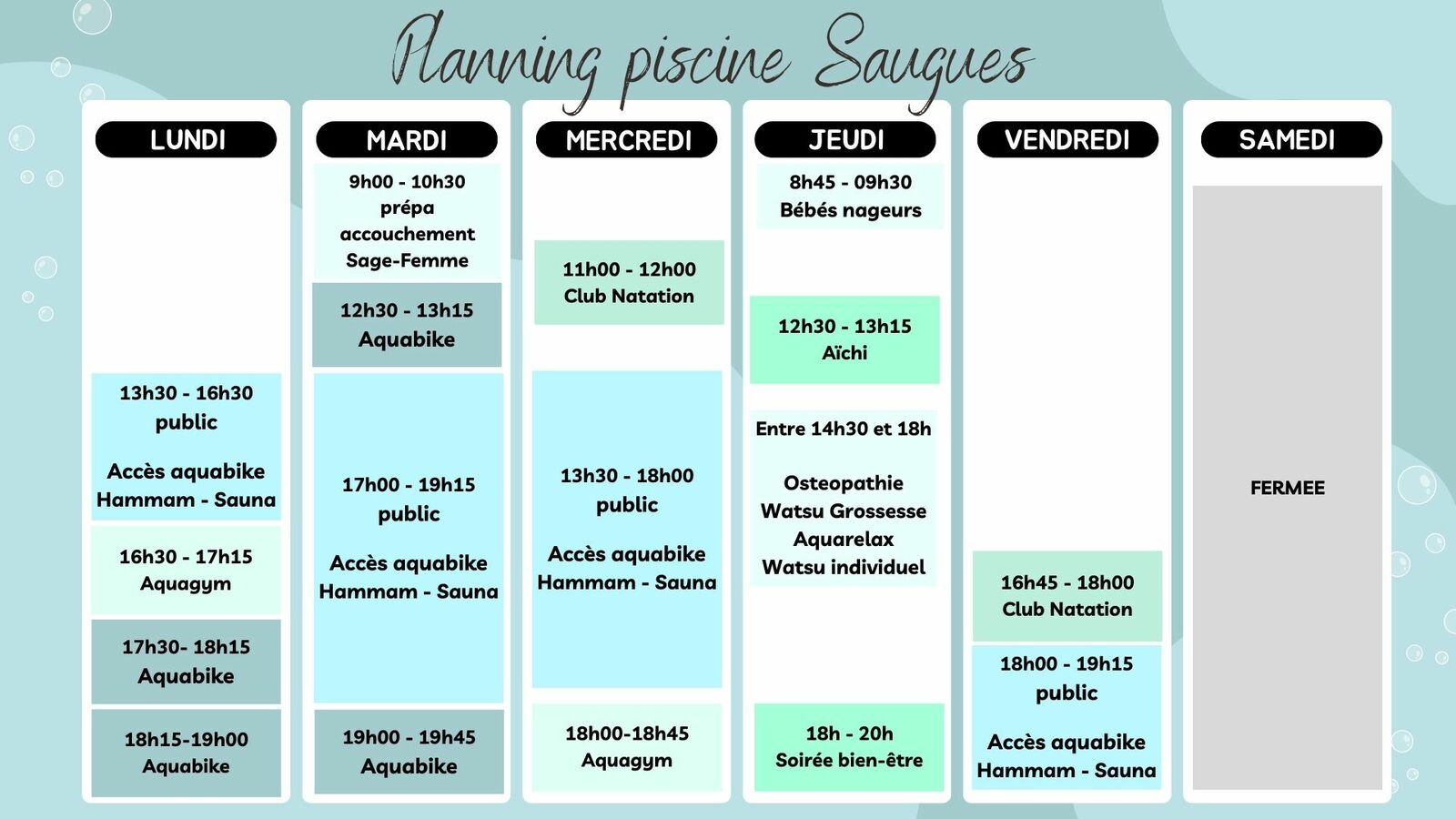 Le club de natation et l'aquagym du mercredi (18h) débuteront le 1er Octobre 2025. |