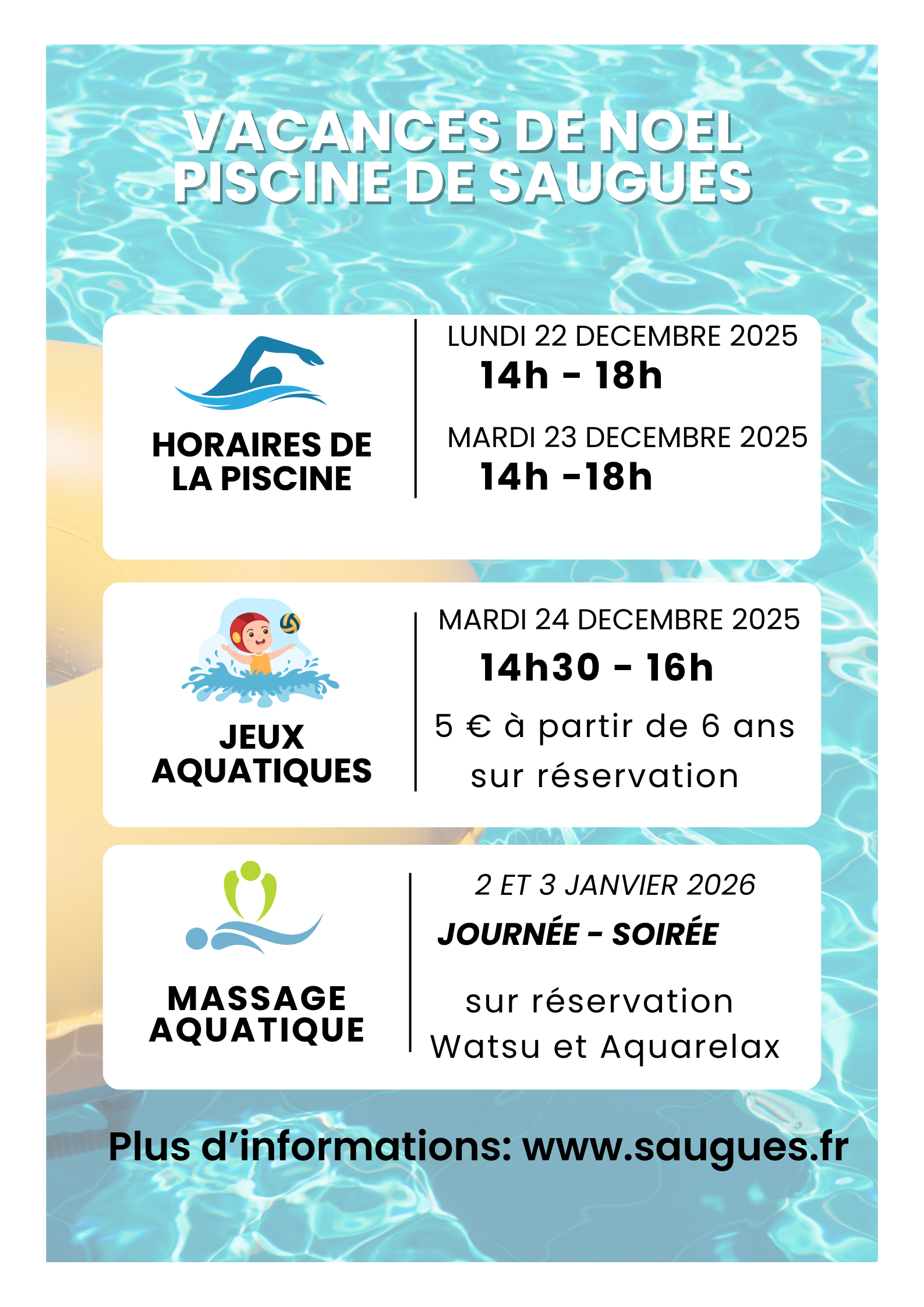 Concept simple : un vélo immergé dans une piscine. Venez pédaler dans l’eau en musique. Ce sport permet de faire travailler toutes les parties du corps, en particulier les jambes, les fesses, les abdominaux et le haut du corps. 4 créneaux : les lundis et mardis À la séance : 15 € À la séance : 12 € (au trimestre) Sur réservation AQUAPHOBIEVaincre sa peur de l’eau et l’apprivoiser à votre rythme avec un maître-nageur dans l’eau avec vous. À la séance (30 min) : 15 € Sur réservation LECON DE NATATIONVenez apprendre à nager à partir de 6 ans. À la séance (30 min) : 12 € Sur réservation BÉBÉ NAGEURMoment ludique à partager avec votre enfant dans une eau à 32 °. À la séance (45 min) : 12€ (pour 2 adultes et un bébé) Sur réservation CLUB NATATIONNager et jouer dans l’eau (plongeon, parcours, perfectionnement…) pour devenir un vrai poisson. À l'année : 50€ (à partir de 6 ans, savoir nager) Sur inscription SAUNA ET HAMMAM